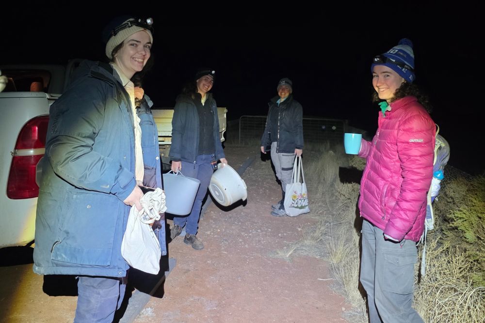 Arid Recovery bettong wranglers about to head out for a big night of bettong trapping. All animal trapping and handing is performed by trained ecologists under wildlife ethics approval.