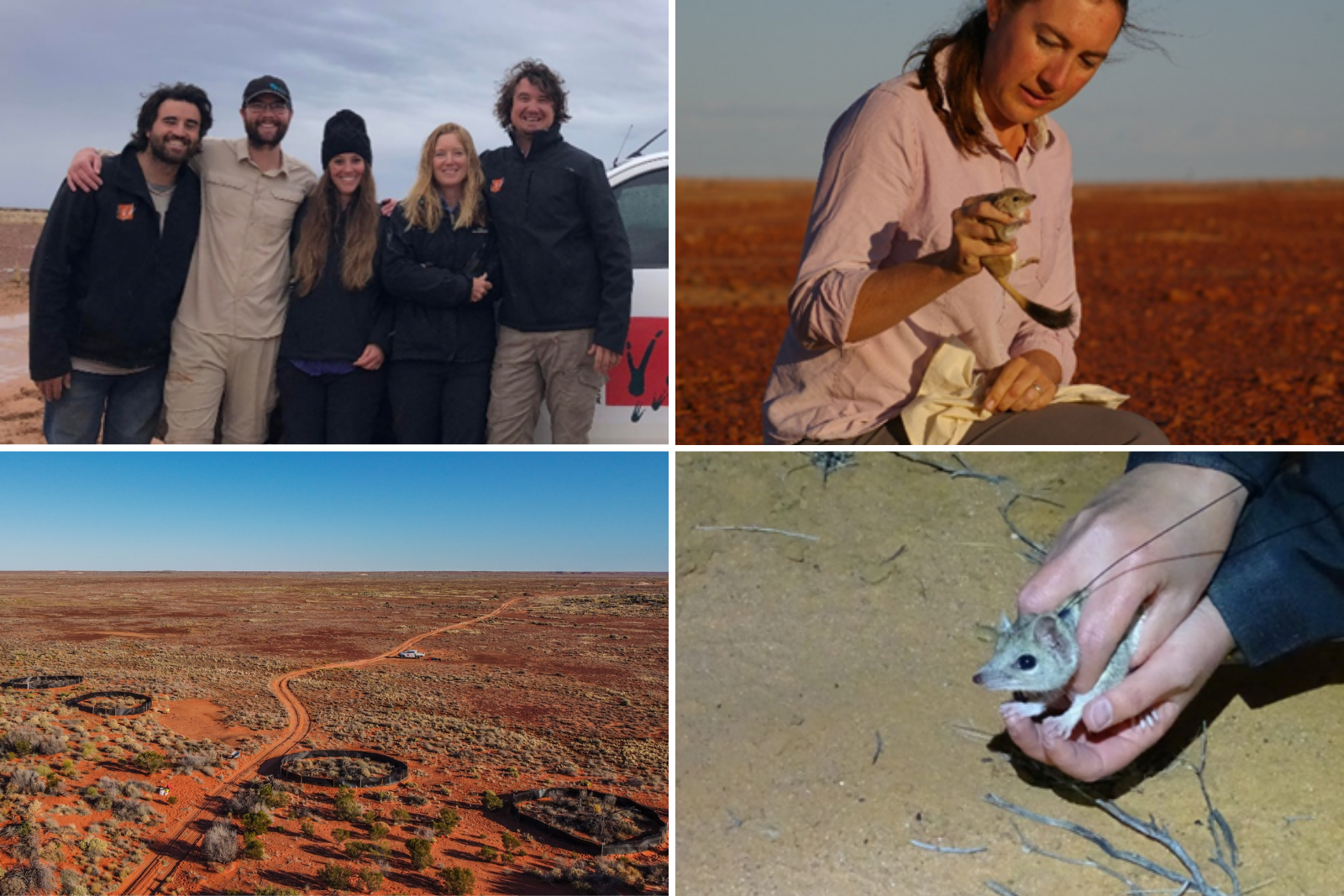 From Cliffton Hills to Arid Recovery (clockwise from top left): Ecologists at Cliftton Hill trapping kowaris reading to take to Arid Recovery, Kath Tuft (former Chief Executive) ready to release a kowari, 12 pens were built to house the kowaris at the reserve, a kowari fitted with a radio collar. Early results exceeded our expectations. Within three months, more than 80% of released females successfully raised young beyond the denning stage (when joeys first leave their mother’s den).