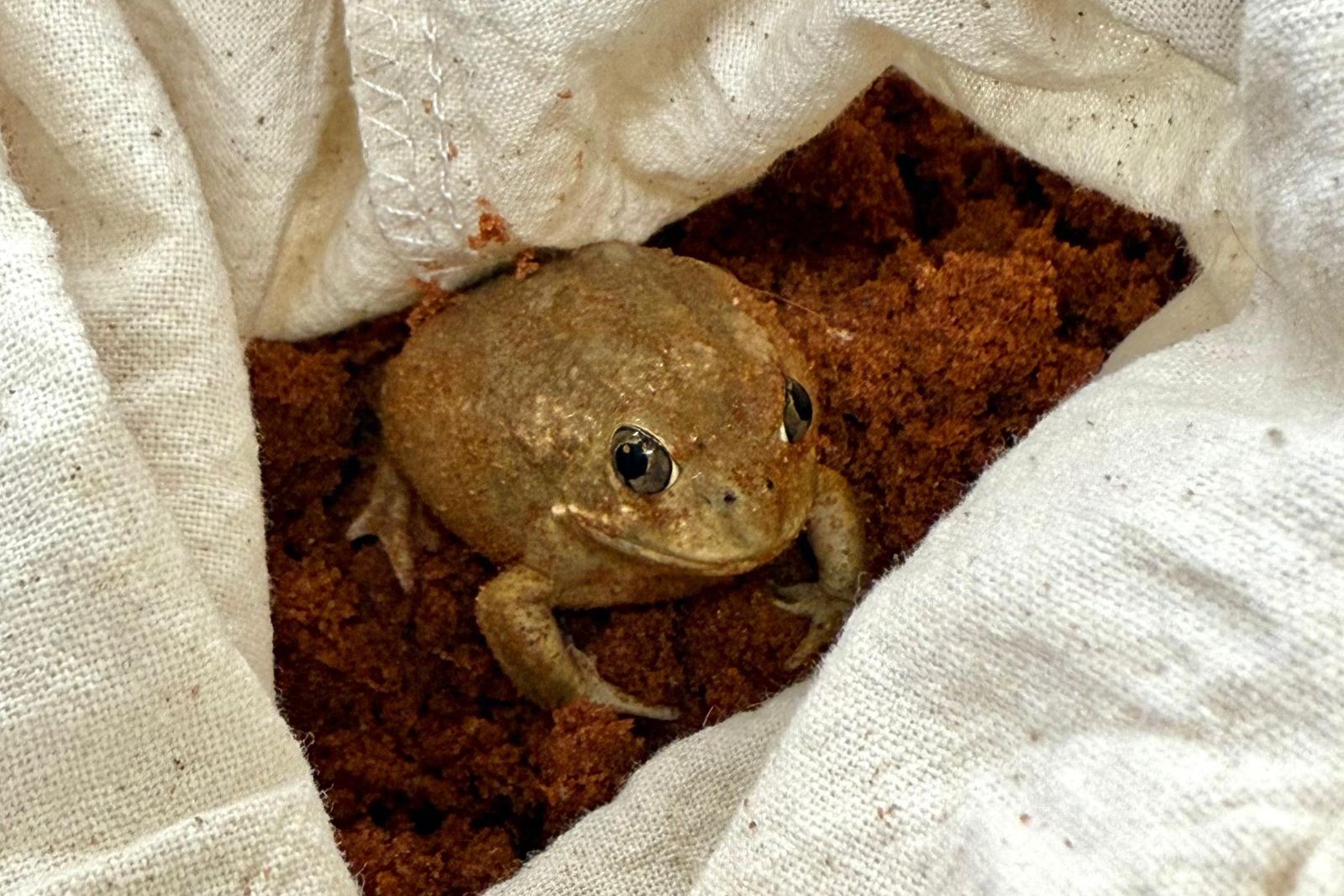 We put wet sand in the bags to keep Sudell's trilling frogs as happy as a frog in wet sand